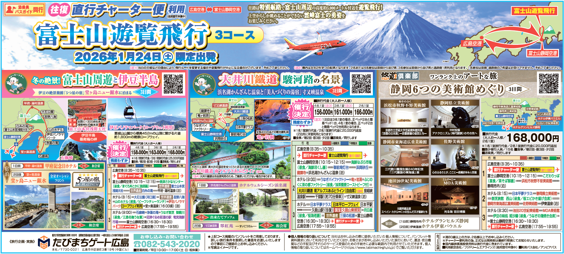 1/24限定出発 FDA直行チャーター便で行く 富士山遊覧飛行 ワンランク上のアートな旅【静岡編】3日間