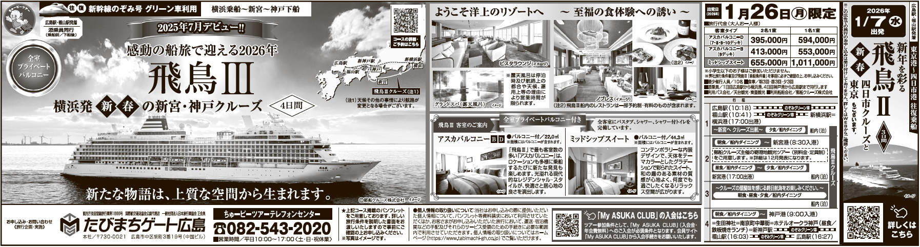 1/7限定出発 新年を彩る飛鳥Ⅱの旅 新春四日市クルーズと東京3日間