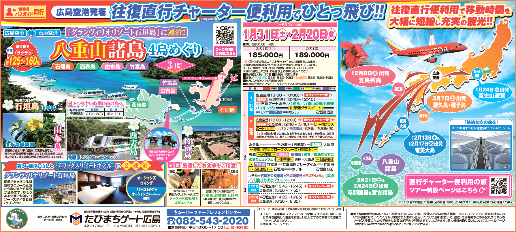 1/31・2/20出発 FDA直行チャーター便で行く 八重山諸島4島めぐり3日間