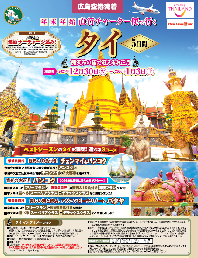 年末年始は海外旅行へ✈乾季のベストシーズンにタイへのご旅行はいかがですか?